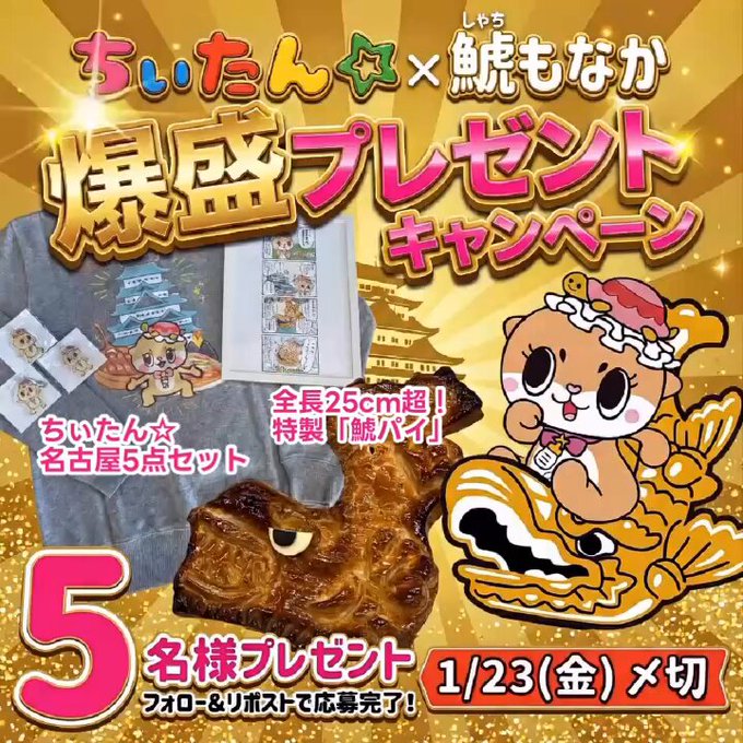 @ChiitanNagoya @shachimonaka をフォロー&キャンペーン対象ポストをリポストしてご応募ください。