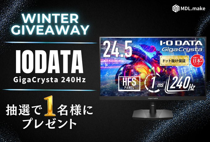 賞品:IODATA GigaCrysta 240Hz ゲーミングモニター(1名様)