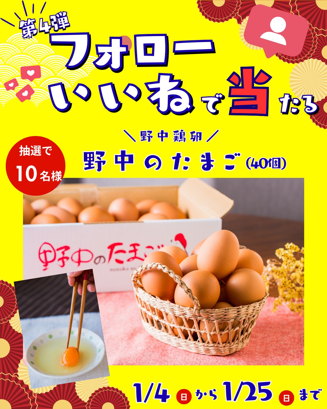 【Instagram懸賞】野中のたまご(40個入り)を10名様にプレゼント