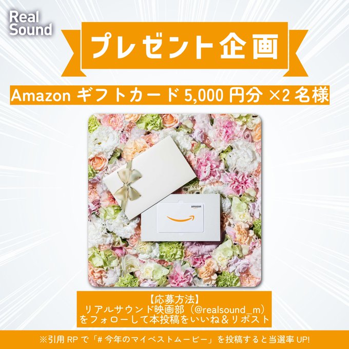 【X懸賞】Amazonギフト券5,000円分を2名様にプレゼント 2026.01.22リアルサウンドから1年の感謝を込めて 賞品:Amazonギフト券5,000円分(2名様) 締切:2026年1月25日(日)応募方法 投稿をリポスト&いいねして、アカウント(@realsound_m)をフォロー※詳細はキャンペーンページにてご確認ください。応募はこちらから