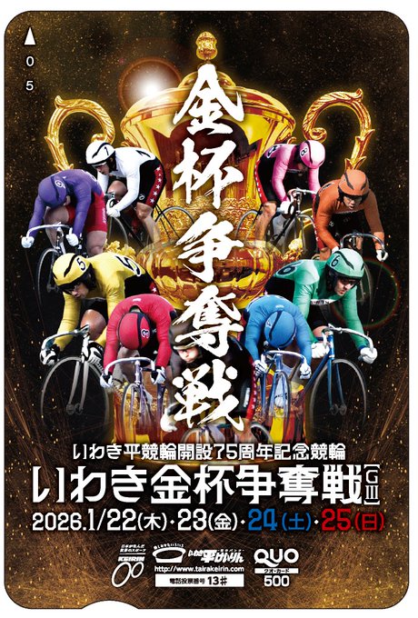 賞品:GⅢ「いわき金杯争奪戦」のオリジナルクオカード(10名様)