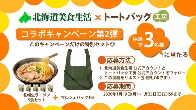 トートバッグ工房×北海道美食生活 コラボキャンペーン第2弾
