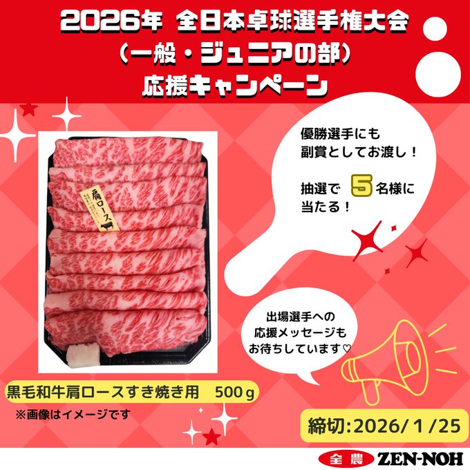 全農広報部 スポーツ応援‐2026年全日本卓球選手権大会 応援キャンペーン