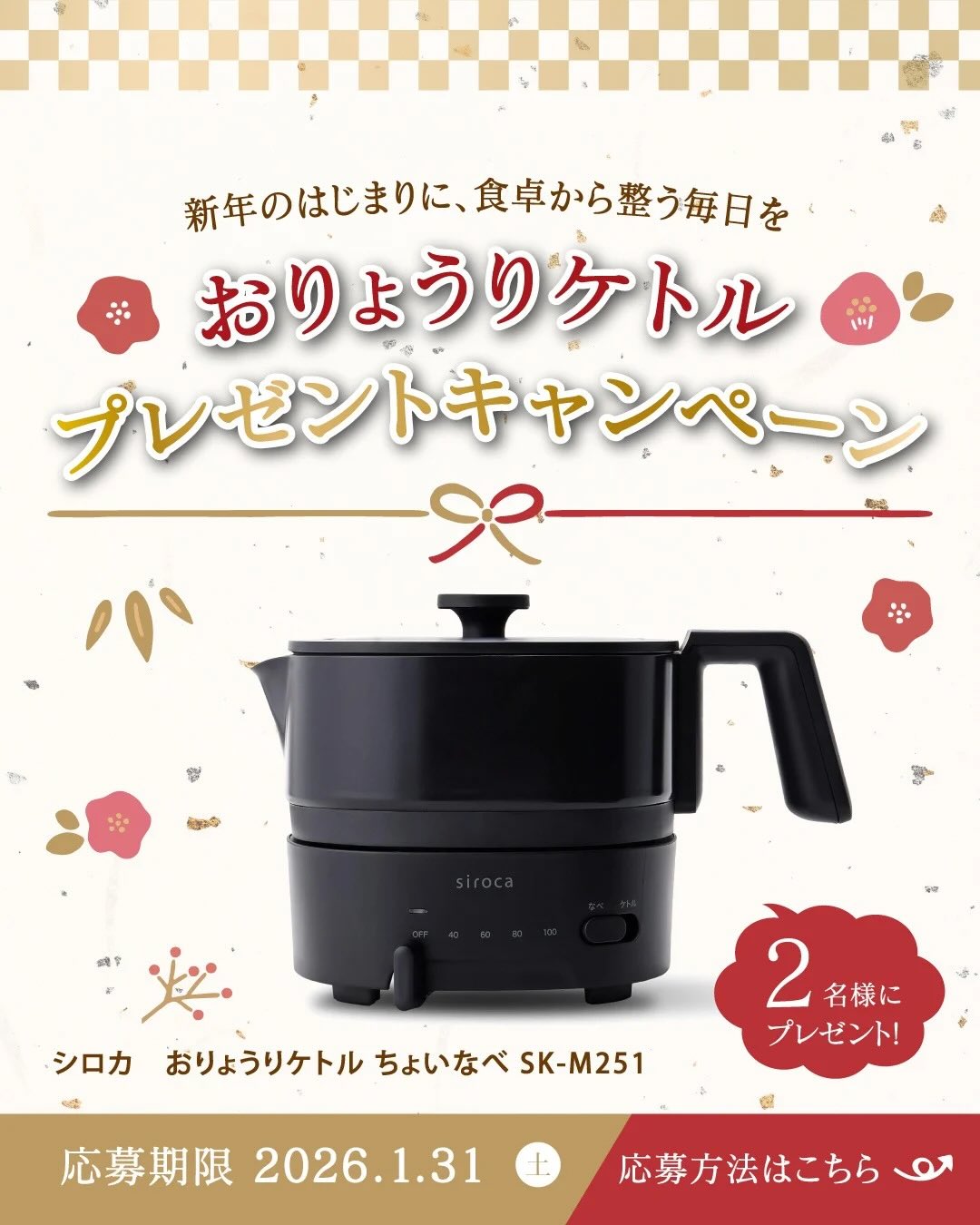 賞品:シロカ おりょうりケトル ちょいなべ SK-M251(2名様)
