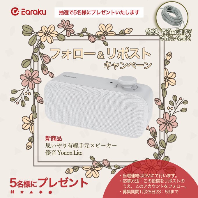 賞品:思いやり有線手元スピーカー 優音Youon Lite(5名様)