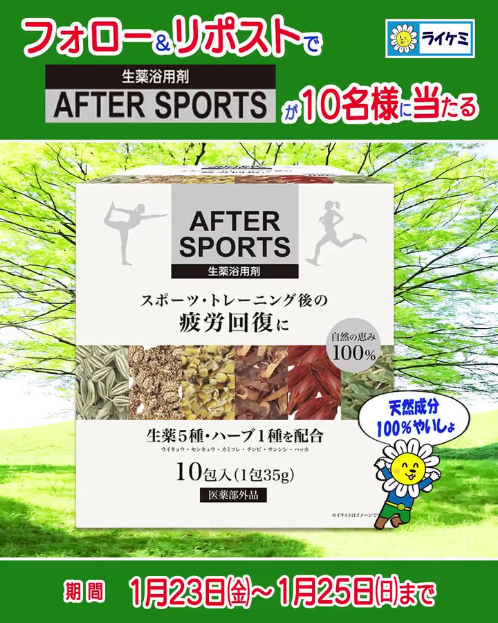 賞品:生薬浴用剤 AFTER SPORTS(10名様)