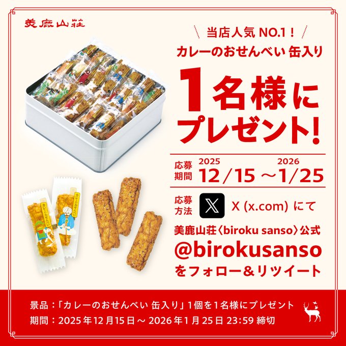 賞品:美鹿山荘の明日誰かに教えたくなる!カレーのおせんべい(1名様)
