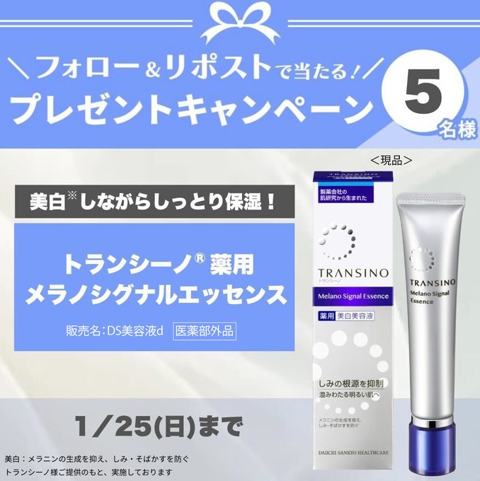 賞品:トランシーノ薬用メラノシグナルエッセンス(5名様)