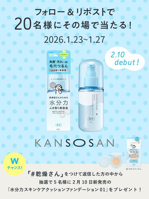 【毎日・X懸賞】乾燥さん 薬用水分力ふき取りエッセンスが20名様にその場で当たる!