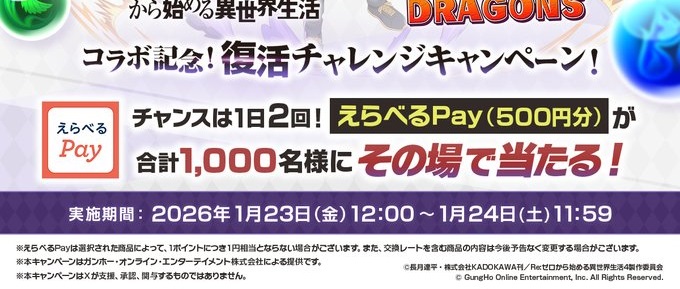 『Re:ゼロから始める異世界生活』×『パズドラ』コラボ記念!復活チャレンジキャンペーン