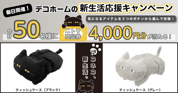 【毎日・X懸賞】ニトリ商品券4,000円分を50名様にプレゼント 2026.01.23ニトリ デコホーム‐デコホームの新生活応援キャンペーン 賞品:ニトリ商品券4,000円分(50名様) 締切:2026年2月13日(金)①アカウントをフォロー ②2つのボタンから選んで投稿 ③当選者にのみDM※詳細はキャンペーンページにてご確認ください。応募はこちらから