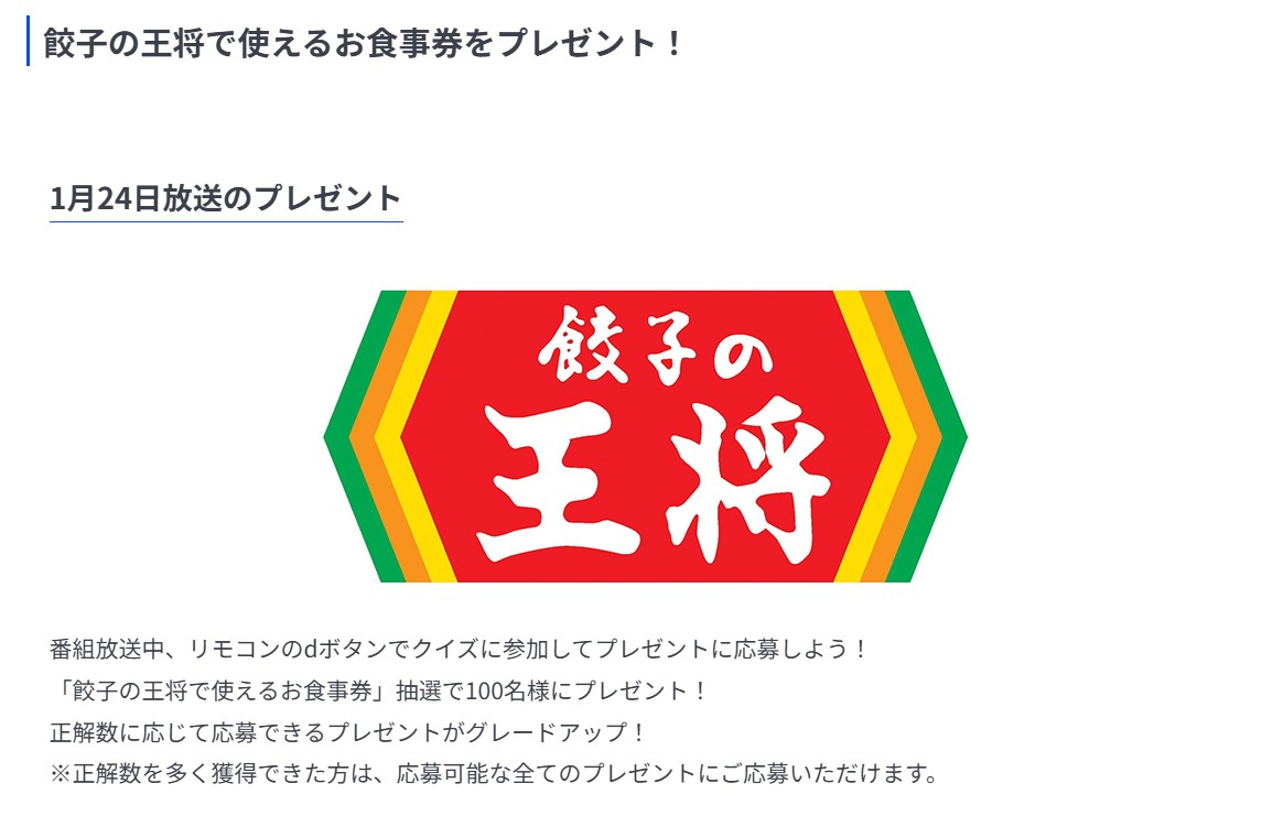 賞品:餃子の王将で使えるお食事券最大10,000円分(合計100名様)