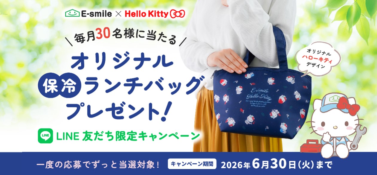 イースマイルLINE公式アカウントよりご応募いただいた方の中から毎月抽選で30名様に、「イースマイル × ハローキティ 」オリジナルデザインの保冷ランチバッグをプレゼント。