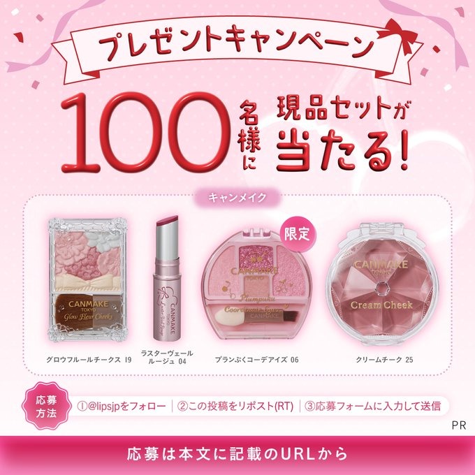 【X懸賞】キャンメイク現品セットを100名様にプレゼント 2026.01.24LIPS‐モニターキャンペーン 賞品:キャンメイク現品セット(100名様) 締切:2026年1月26日(月)①@lipsjpをフォロー ②投稿をリポスト(RT) ③応募フォームに入力して送信※詳細はキャンペーンページにてご確認ください。応募はこちらから