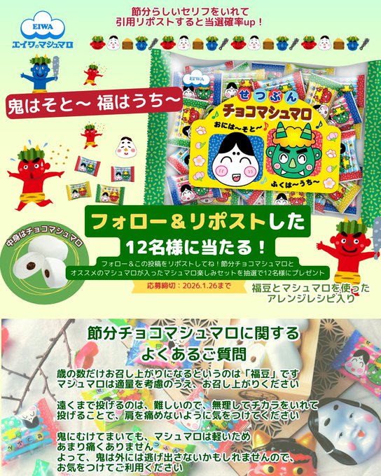 賞品:エイワの節分チョコマシュマロ(12名様)
