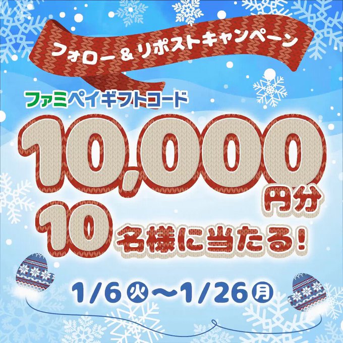 賞品:ファミペイギフトコード10,000円分(10名様)