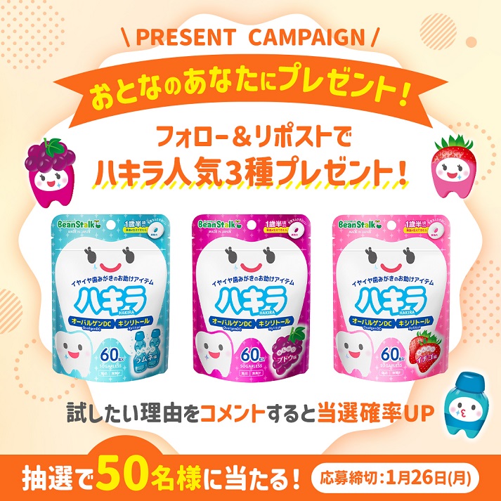 賞品:「ハキラ」人気3種(50名様)