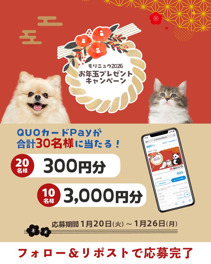 賞品:QUOカードPay最大3,000円分(30名様)