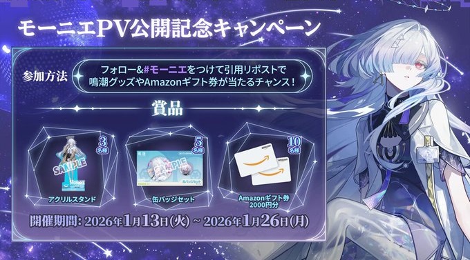 賞品:鳴潮グッズ、Amazonギフト券1,000円分(18名様)