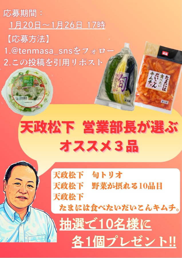 賞品:天政松下の営業部長がオススメする商品セット(10名様)