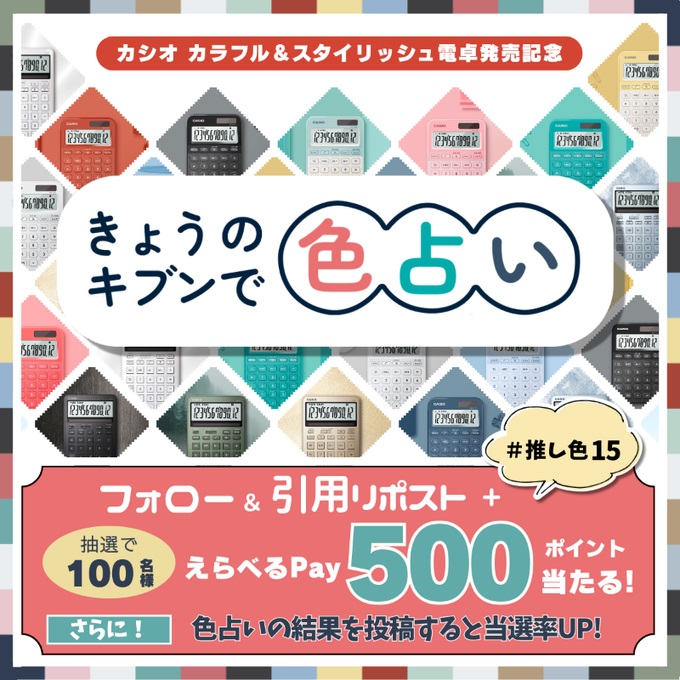 カシオ電卓‐15色の電卓発売記念 きょうのキブンはどんな色?色占いキャンペーン