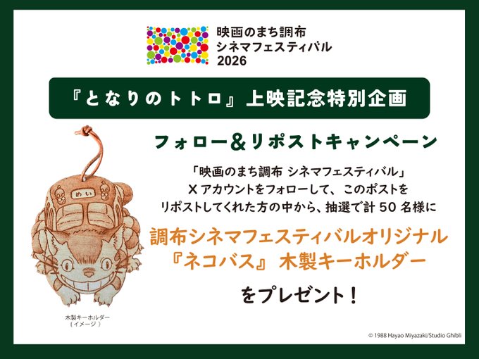 賞品:調布シネマフェスティバル オリジナル『ネコバス』木製キーホルダー(50名様)