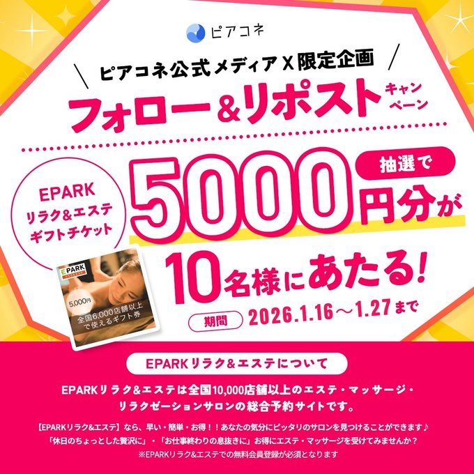 賞品:EPARKリラク&エステ ギフトチケット 5,000円分(10名様)