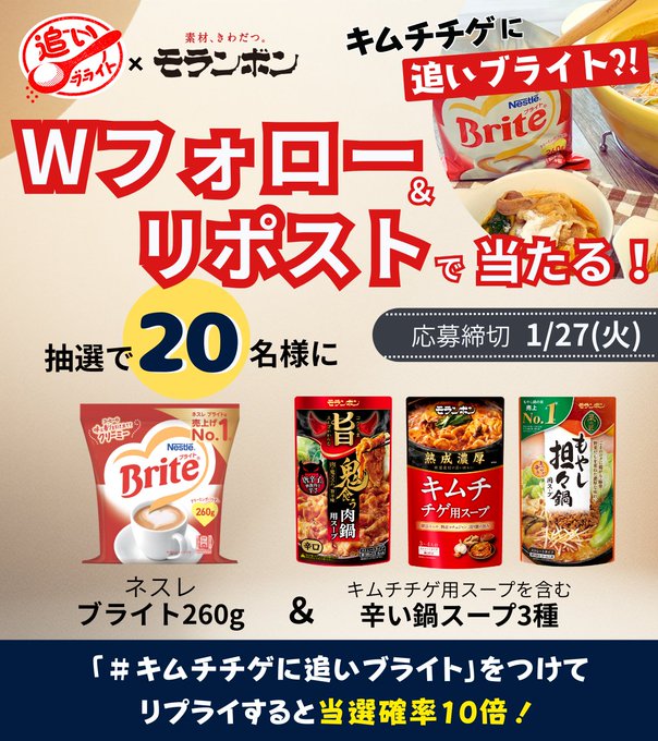 @moranbong1979と@BRITE_Japanをフォロー&キャンペーン対象ポストをリポストしてご応募ください。