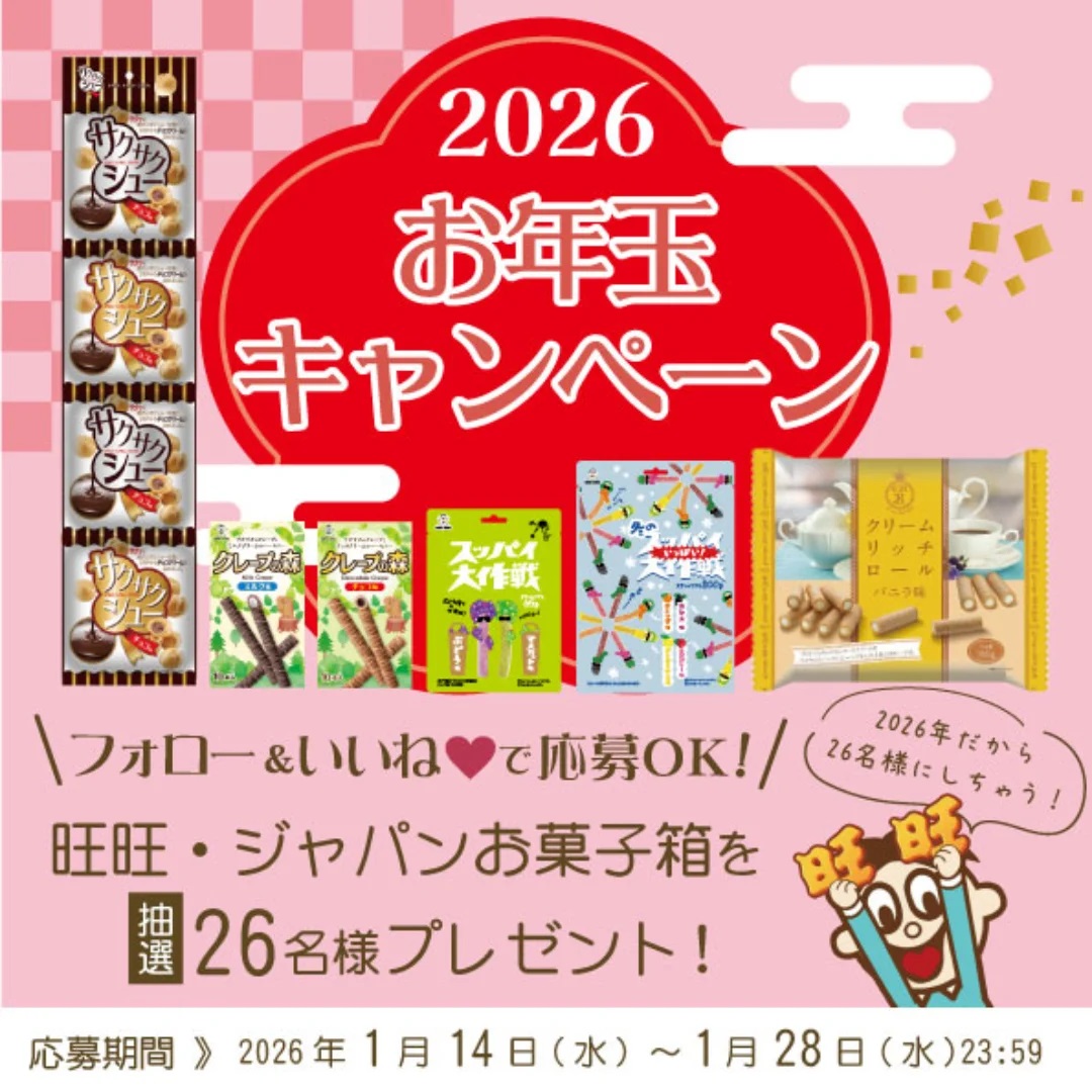 賞品:旺旺・ジャパンのお菓子箱(26名様)