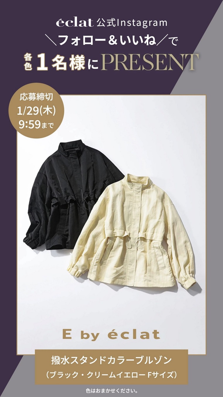 E by eclat 「撥水スタンドカラーブルゾン」ブラック Fサイズ 1名様