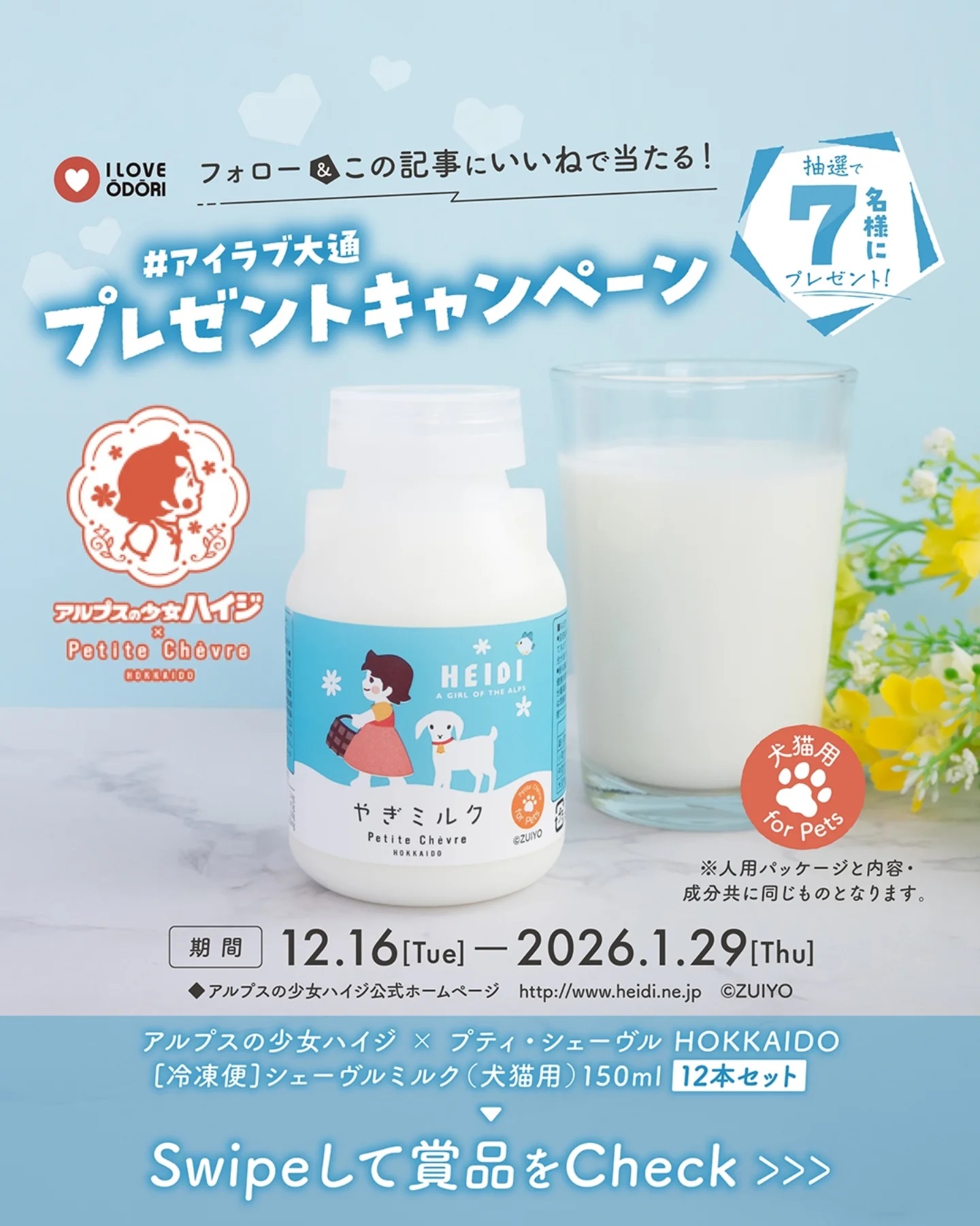 賞品:シェーヴルミルク(犬猫用)150ml 12本セット ハイジコラボ(7名様)