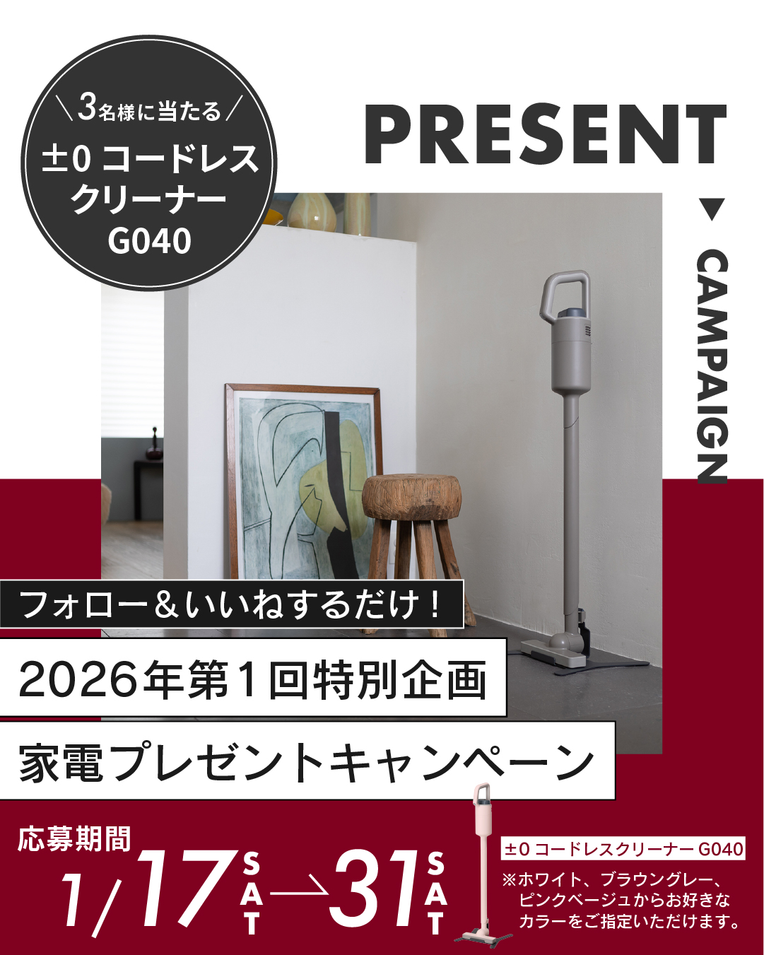 賞品:±0(プラスマイナスゼロ)コードレスクリーナー(3名様)