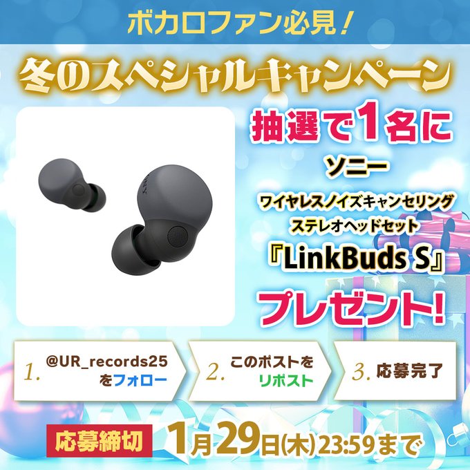 賞品:ソニー ワイヤレスノイズキャンセリング ステレオヘッドセット LinkBuds S(1名様)
