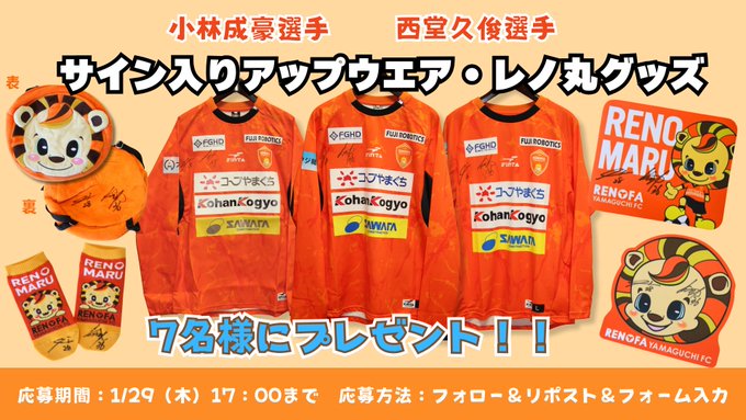 賞品:#小林成豪 選手&#西堂久俊 選手サイン入りアップウェア&レノ丸グッズ(7名様)