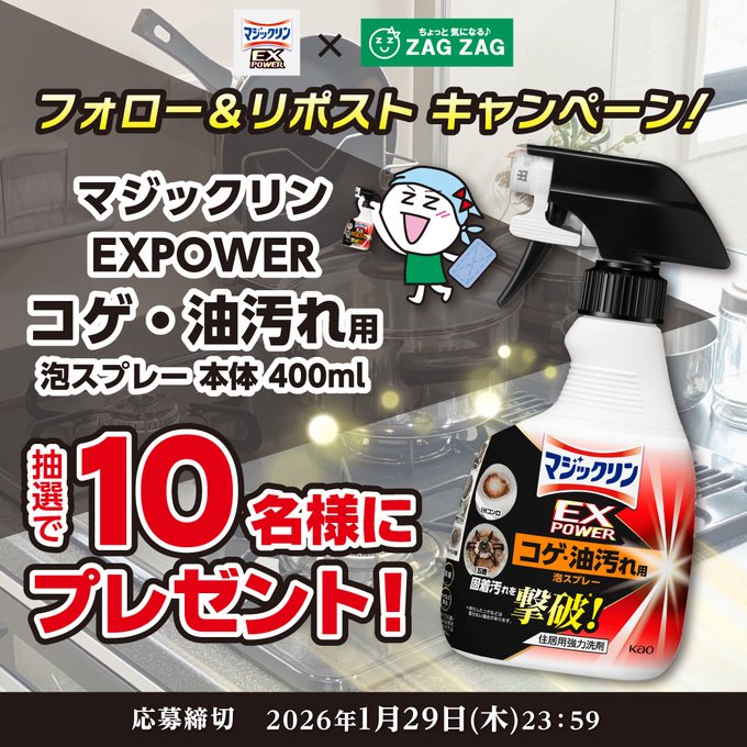 【X懸賞】マジックリン EXPOWER コゲ・油汚れ用泡スプレーを10名様にプレゼント