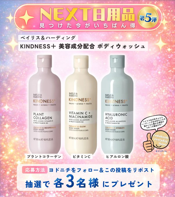 【X懸賞】ベイリスアンドハーディング「KINDNESS+」を9名様にプレゼント 2026.01.26ヨドバシ@日用品専門‐プレゼントキャンペーン 賞品:ベイリスアンドハーディング「KINDNESS+」(9名様) 締切:2026年1月29日(木)👉フォロー&リポスト👉どれを使ってみたい?✍️※詳細はキャンペーンページにてご確認ください。応募はこちらから