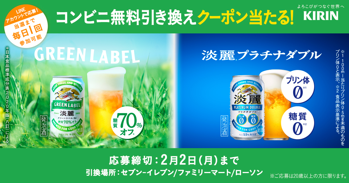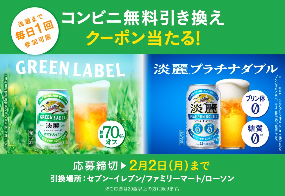 淡麗プラチナダブル・淡麗グリーンラベル 無料引き換えクーポン当たる!キャンペーン