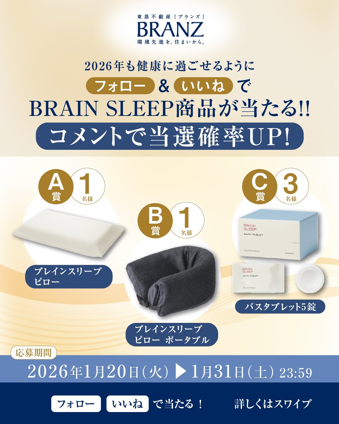 【Instagram懸賞】ブレインスリープ ピロー、ブレインスリープ ネックピロー、バスタブレットを合計5名様にプレゼント