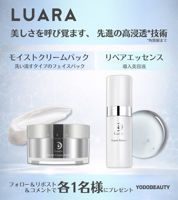 【X懸賞】LUARA リペアエッセンス(導入美容液)、洗い流すモイストクリームパックを2名様にプレゼント