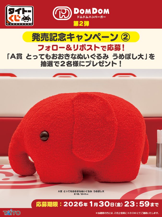 賞品:A賞 とってもおおきなぬいぐるみ うめぼし大(2名様)