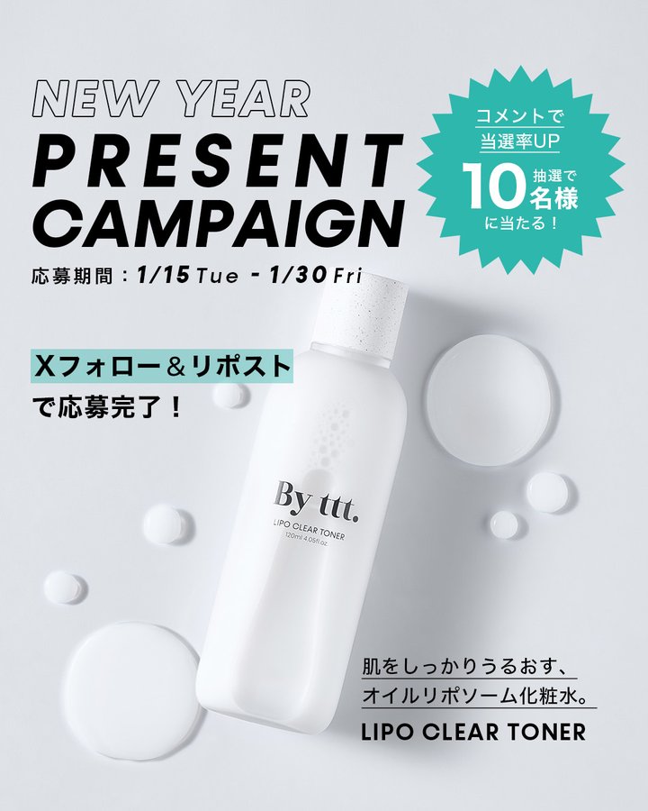 【X懸賞】By ttt.のオイルリポソーム化粧水を10名様にプレゼント