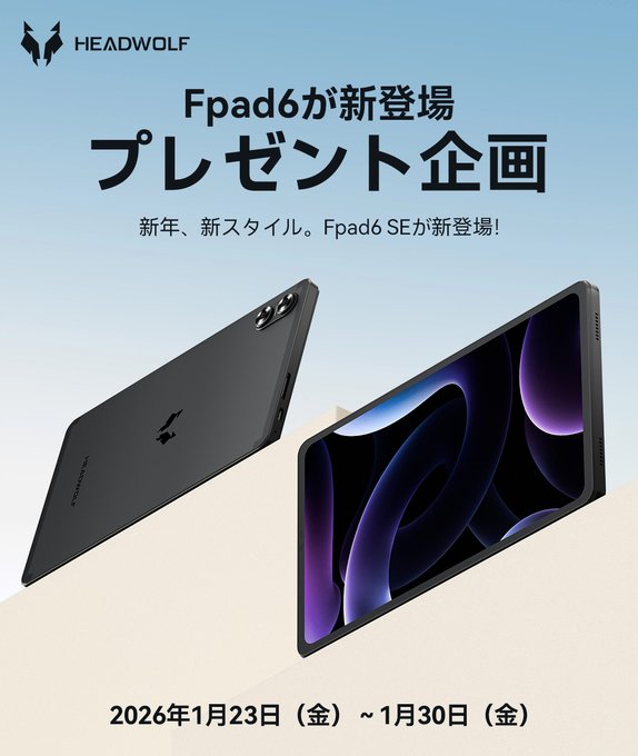 【X懸賞】Headwolf Fpad6 SEを1名様にプレゼント 2026.01.27Headwolf‐フォロー&リポストキャンペーン 賞品:Fpad6 SE(1名様) 締切:2026年1月30日(金)公式X(Twitter)アカウントをフォロー&キャンペーン対象ポストをリポストしてご応募ください。※詳細はキャンペーンページにてご確認ください。応募はこちらから