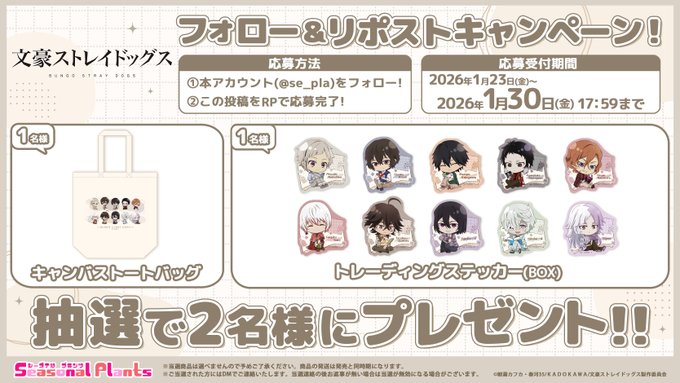 賞品:アニメ「文豪ストレイドッグス」のグッズ(2名様)