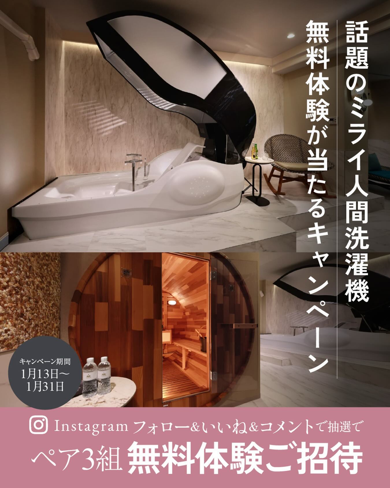 【Instagram懸賞】ミライ人間洗濯機 無料体験ご招待を3名様にプレゼント 2026.01.28クリスタルホテルグループ‐話題のミライ人間洗濯機体験が当たる! 賞品:ミライ人間洗濯機 無料体験(3名様) 締切:2026年1月31日(土)フォロー + いいね + コメントで応募完了!※詳細はキャンペーンページにてご確認ください。応募はこちらから