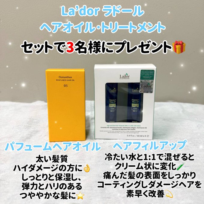 賞品:ラドール ヘアフィルアップ&パフュームヘアオイル(3名様)