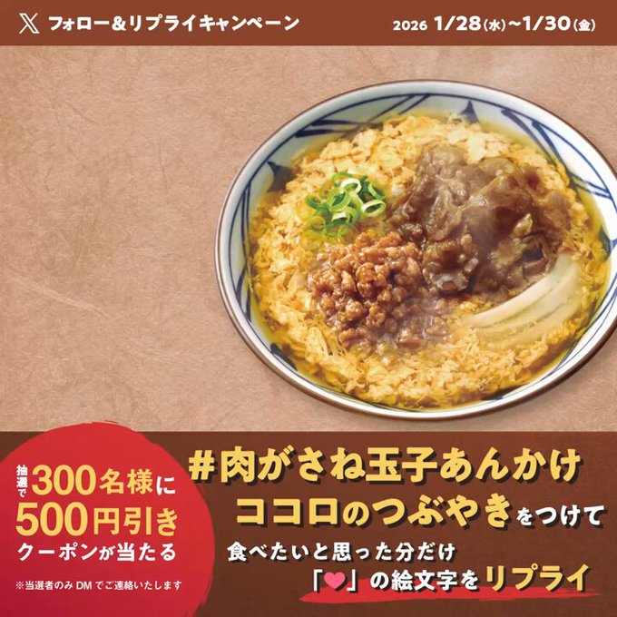 丸亀製麺‐冬の丸亀製麺ココロのつぶやき フォロー&リプライキャンペーン