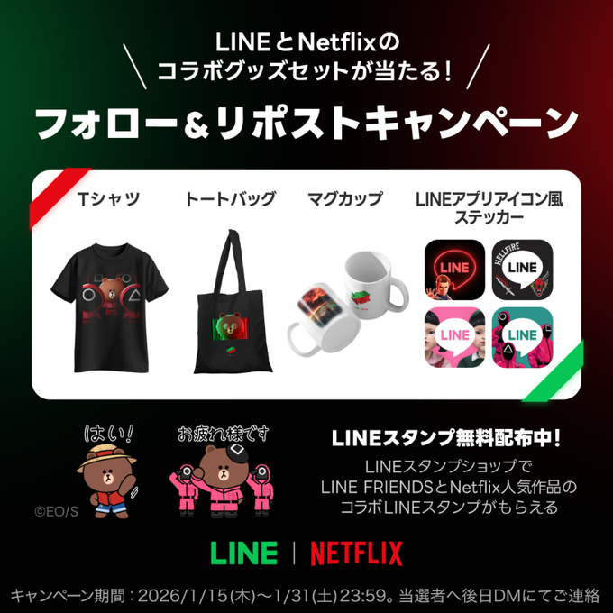 賞品:LINEとNetflixコラボグッズ(10名様)
