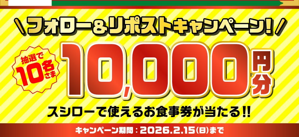 【X懸賞】スシローで使えるお食事券1万円分を10名様にプレゼント
