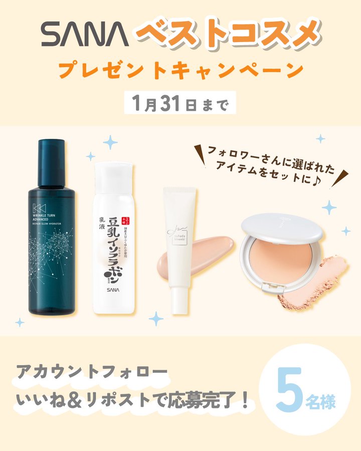賞品:「SANAベストコスメアンケート」で人気を集めたアイテムセット(5名様)