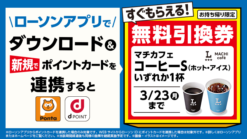 ローソンアプリで新規でポイントカードを連携すると、無料引換券がもらえる!